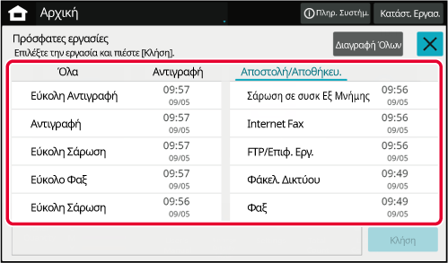 των πιο πρόσφατα χρησιμοποιημένων Έως 10 εργασιών σε μια λίστα.