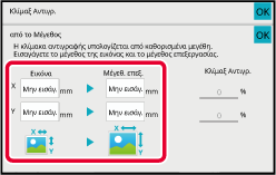 Καθορισμός της επιθυμητής κλίμακας ζουμΟρίστε τις διαστάσεις Χ και Υ για το μέγεθος της εικόνας και του αντιγράφου.