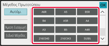 Πατήστε το κατάλληλο πλήκτρο για το μέγεθος του πρωτοτύπου.