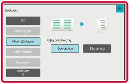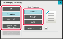 ΛΕΙΤΟΥΡΓΙΑ ΑΝΤΙΓΡΑΦΗΣΕπιλέξτε τον αριθμό των συνδετήρων και τη θέση συρραφής.
