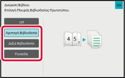 Κατά την εισαγωγή εξωφύλλου, πατήστε το πλήκτρο [Ρύθμιση Εξωφύλλου] και το πλήκτρο [On].