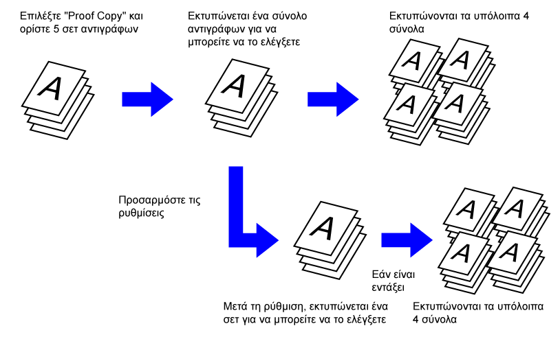 δοκιμαστικό αντίγραφο πριν από την εκτύπωση του καθορισμένου αριθμού αντιγράφων.
