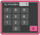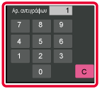 Τοποθετήστε το πρωτότυπο στον δίσκο του αυτόματου τροφοδότη πρωτοτύπων ή στο κρύσταλλο πρωτοτύπων.Ορίστε τον αριθμό των αντιγράφων (αριθμός συνόλων) με τα αριθμητικά πλήκτρα.