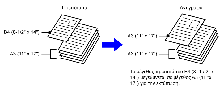 επιλογής κλίμακας, το μέγεθος πρωτοτύπου B4 (8-1/2" x 14") μεγεθύνεται