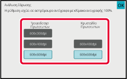 Μπορείτε να καθορίσετε την ανάλυση τόσο στον τροφοδότη πρωτοτύπων όσο και στο κρύσταλλο πρωτοτύπων. Αφού ολοκληρώσετε τις ρυθμίσεις, πατήστε διαδοχικά το πλήκτρο [OK] και το πλήκτρο [Προηγούμεν].