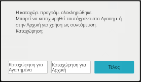 Εμφανίζεται ένα μήνυμα ολοκλήρωσης της εγγραφής.
