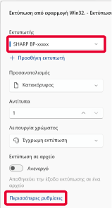 Επιλέξτε το πρόγραμμα οδήγησης εκτυπωτή για το μηχάνημα και κάντε κλικ στην επιλογή [Περισσότερες ρυθμίσεις].