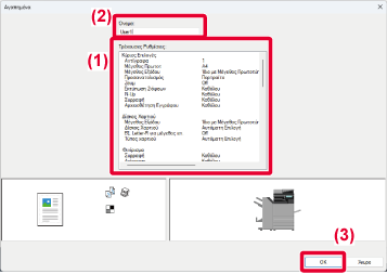Για τις επεξηγήσεις των ρυθμίσεων, δείτε τη Βοήθεια του προγράμματος οδήγησης εκτυπωτή.Κατά τη χρήση του συγκεκριμένου μηχανήματος
