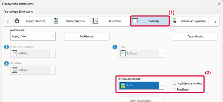 εκτύπωσης και να την εκτυπώσετε χρησιμοποιώντας πολλαπλά φύλλα χαρτιού