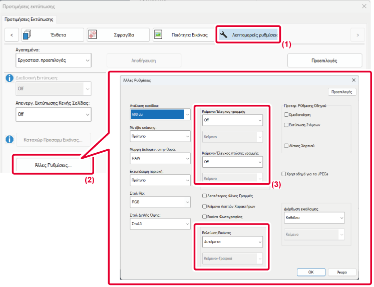 Μπορείτε να κάνετε τα άκρα κειμένου και γραφικών πιο απαλά ή πιο έντονα. Αυτόματα: Πραγματοποιείται η καλύτερη δυνατή βελτίωση της εικόνας. Απενεργοποίηση: Δεν εφαρμόζεται καμία βελτίωση της εικόνας. Έντονα: Εφαρμόζεται έντονα η βελτίωση της εικόνας. Απαλά: Εφαρμόζεται απαλά η βελτίωση της εικόνας. |