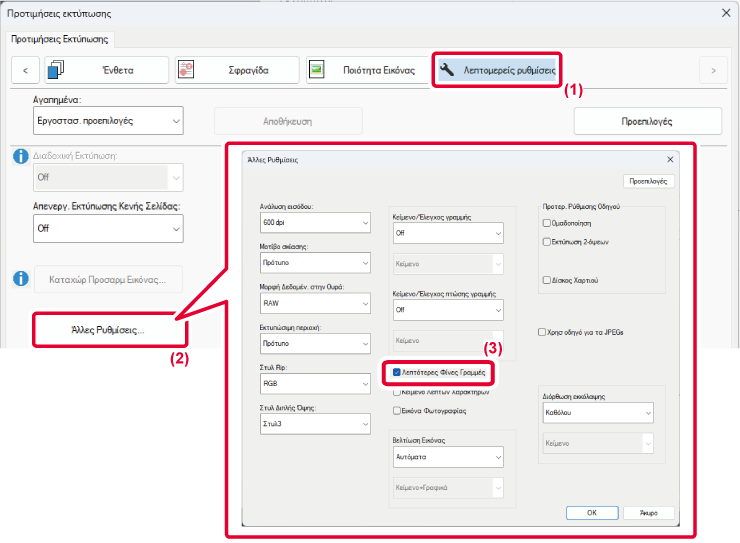 της γραμμής, όταν οι γραμμές εκτύπωσης δεν είναι ευκρινείς στην