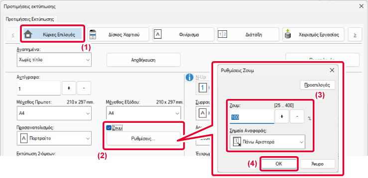 του 1%. Επιπλέον, επιλέξτε το σημείο βάσης του χαρτιού ως [Πάνω Αριστερά]