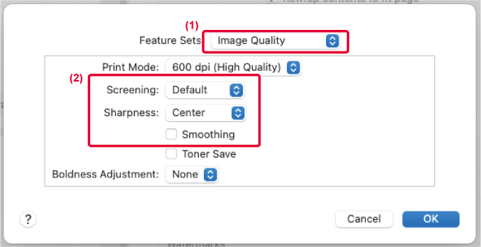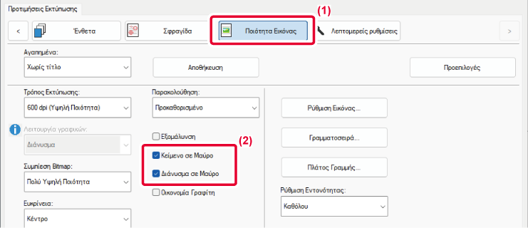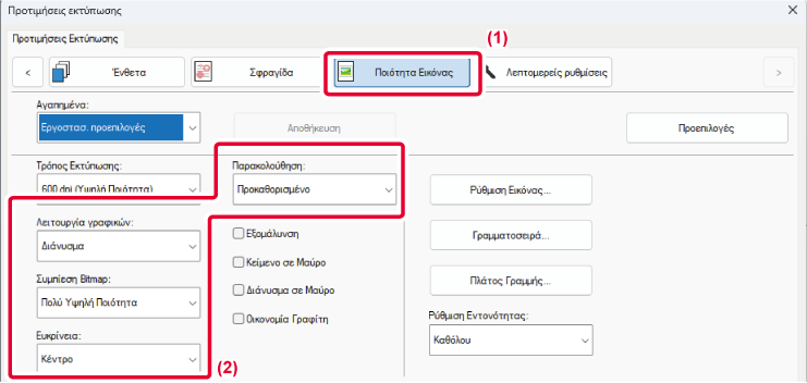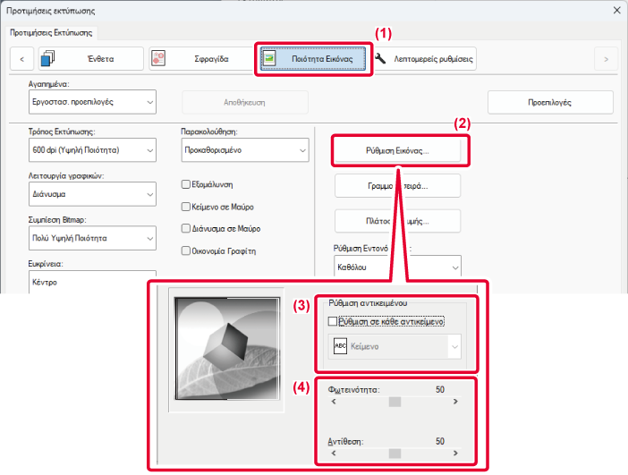 η φωτεινότητα και η αντίθεση στις ρυθμίσεις εκτύπωσης, όταν εκτυπώνεται