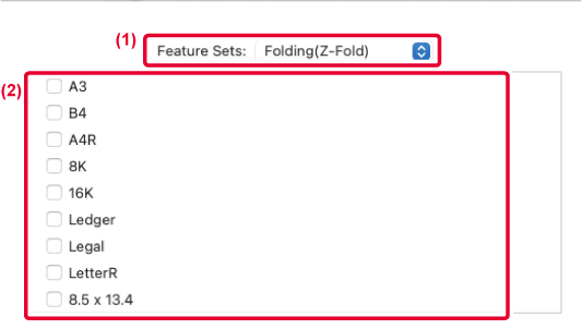 Πολλαπλά φύλλα διπλώνονται ομαδικά στο κέντρο. Όταν υπάρχει εγκατεστημένη μονάδα καρφιτσώματος στη ράχη (μεγάλος στοιβακτής), μπορείτε να επιλέξετε ένα ή πολλαπλά φύλλα. |