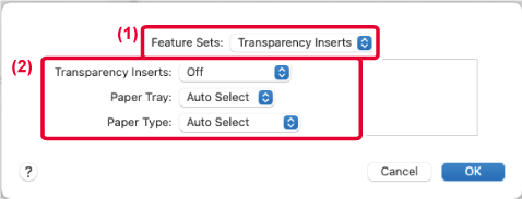 Ορίστε [Χαρτί με Ετικέτα] στην επιλογή [Επιλογή Ενθέτων] στην καρτέλα