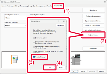 Στα Windows 10, κάντε κλικ στο εικονίδιο του προγράμματος οδήγησης εκτυπωτή του μηχανήματος και κλικ στην επιλογή [Διαχείριση] και στην επιλογή [Προτιμήσεις εκτύπωσης].Καθορίστε κωδικό χρέωσης