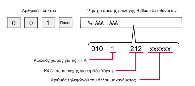 Για παράδειγμα, για διεθνείς κλήσεις, πατήστε το πλήκτρο [Παύση]
