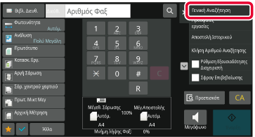 Στη βασική οθόνη ή στην οθόνη βιβλίου διευθύνσεων πατήστε στην επιλογή [Γενική Αναζήτηση Διεύθυνσης] του πίνακα λειτουργίας.