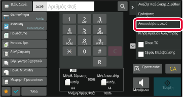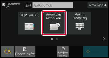 Στη βασική οθόνη ή στην οθόνη βιβλίου διευθύνσεων πατήστε στην επιλογή [Αποστολή Ιστορικού] του πίνακα λειτουργίας.
