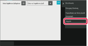 Πατήστε το πλήκτρο των ληφθέντων δεδομένων που θέλετε να αποθηκεύσετε και, στον πίνακα λειτουργίας, το πλήκτρο [Αρχείο].