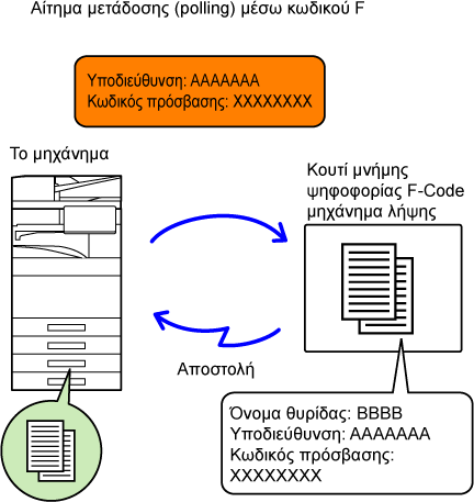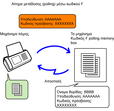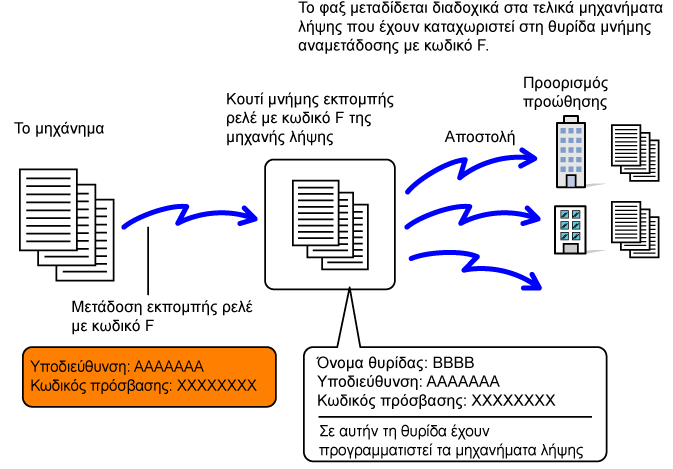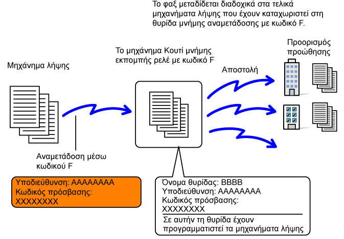 αποστολή φαξ σε θυρίδα μνήμης αναμετάδοσης μέσω κωδικού F προς κάποιο