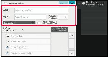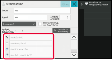 Πατήστε [Αριθμός Φαξ], [Διεύθυνση E-mail], [Διεύθ. Internet Fax], [Απευθείας Διεύθ.
