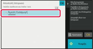 Στη λειτουργία αποστολής φαξ ή εικόνας, πατήστε [Αποστολή Ιστορικού] στον