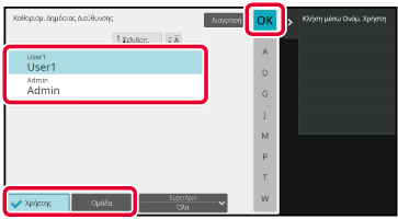 Πατήστε [Χρήστης] ή [Ομάδα] και καθορίστε σε ποιον θα δημοσιευτεί η διεύθυνση.