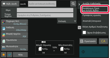 [Κοινές Ρυθμίσεις] → [Ρυθμίσεις Κατάστασης] → [Επιλ. Προκαθ. Βιβλ. Διευθύνσ.] → [Εφαρμογή