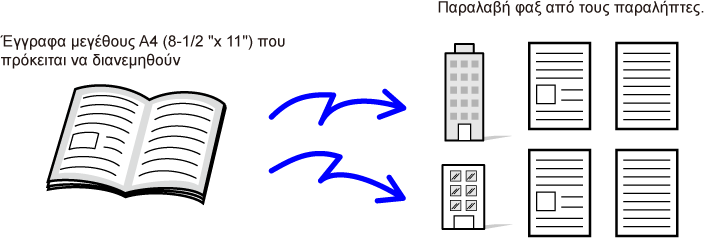 Καταχωρίστε τη διεύθυνση κάθε υποκαταστήματος. ![]() Επιλέξτε Σάρωση Διπλ. Σελ. ![]() Ορίστε Απαλοιφή. ![]() Πατήστε το πλήκτρο [Έναρξη]. Σάρωση και αποστολή πρωτοτύπου. |