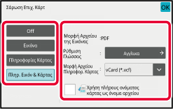 Επιλέξτε τις ρυθμίσεις για την Σάρωση επαγγελματικών καρτών.
