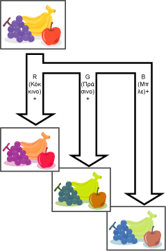 οποιοδήποτε από τα τρία χρωματικά στοιχεία R (κόκκινο), G (πράσινο) ή