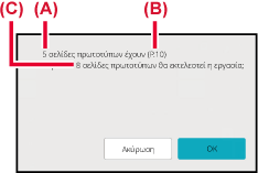 Ο αριθμός που εμφανίζεται είναι ο αριθμός των φύλλων των σαρωμένων πρωτοτύπων και όχι ο αριθμός των σελίδων των σαρωμένων πρωτοτύπων. Για παράδειγμα, όταν εκτελείται αντιγραφή διπλής όψης με χρήση ενός πρωτοτύπου, εμφανίζεται ο αριθμός "1" για να υποδειχθεί ότι σαρώθηκε ένα φύλλο πρωτοτύπου και όχι ο αριθμός "2" για να υποδειχθεί η μπροστινή και η πίσω σελίδα.