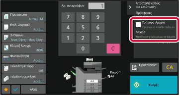 το φαξ, αγγίξτε το πλήκτρο [Αρχείο] ή [Γρήγορο Αρχείο] στον πίνακα