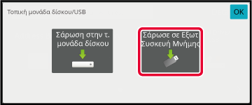 Πατήστε [Σάρωση σε Εξωτερική Συσκευή Μνήμης] στον πίνακα λειτουργίας.