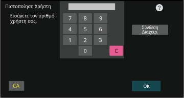 Κατά την εκκίνηση του μηχανήματος, εμφανίζεται η οθόνη σύνδεσης.