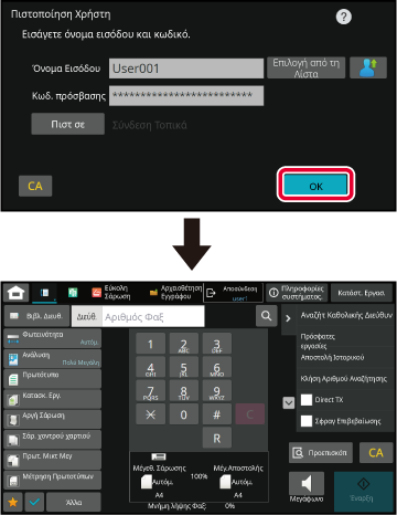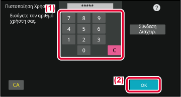 Μετά την πιστοποίηση του πληκτρολογημένου αριθμού χρήστη,