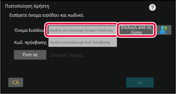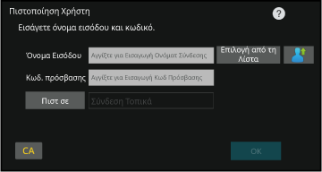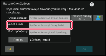 ανάλογα με τη μέθοδο πιστοποίησης ενδέχεται να εμφανιστεί το πλήκτρο [Διεύθ. E-mail].