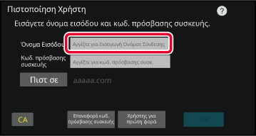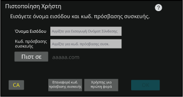 μηχάνημα χρησιμοποιώντας όνομα εισόδου/κωδικό πρόσβασης συσκευής.