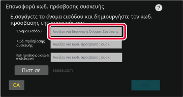 ονόματος εισόδου/κωδικού πρόσβασης συσκευής, πατήστε το πλήκτρο