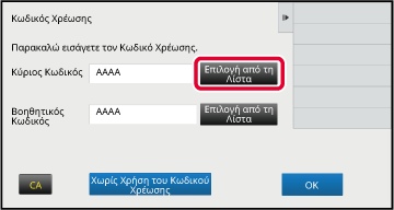 για να ολοκληρώσετε τη διαδικασία καταχώρησης.Όταν εμφανιστεί το παράθυρο εισαγωγής κωδικού χρέωσης, πατήστε το πλήκτρο [Επιλογή από τη Λίστα] του κύριου κωδικού.