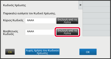.Πατήστε το πλήκτρο [Επιλογή από τη Λίστα] του βοηθητικού κωδικού.