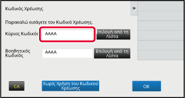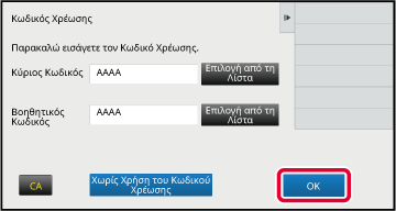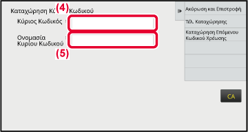 Όταν εμφανιστεί το παράθυρο εισαγωγής κωδικού χρέωσης, πατήστε το πλαίσιο [Κύριος Κωδικός] και εισαγάγετε τον κύριο κωδικό.
