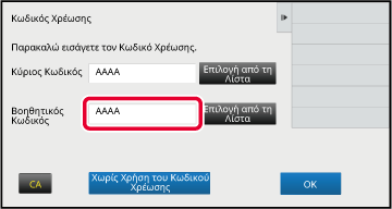 Πατήστε το πλαίσιο [Βοηθητικός Κωδικός] και εισαγάγετε το βοηθητικό κωδικό.