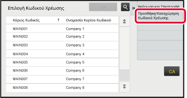 Πατήστε [Προσθήκη/Καταχώρηση Κωδικού Χρέωσης] στον πίνακα λειτουργίας.