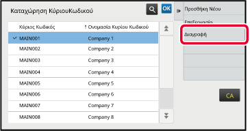 Πατήστε και επιλέξτε τον κύριο κωδικό που θέλετε να διαγράψετε και, στη συνέχεια, πατήστε [Διαγραφή] στον πίνακα ενεργειών.