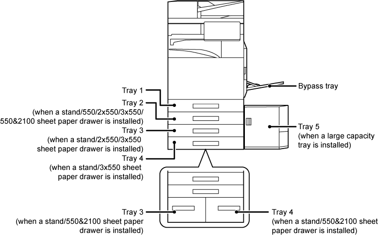 *5 When a large capacity tray is installed.