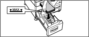 stack must not be higher than the indicator line (maximum of 1200 sheets