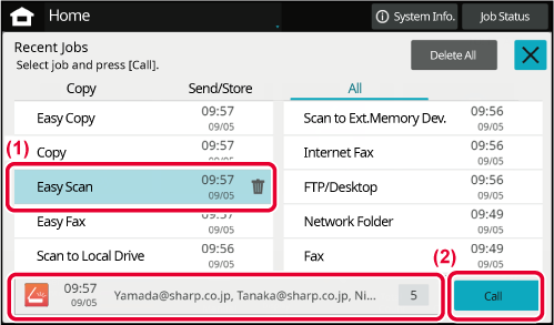 images or images stored in the machine using the touch panel.