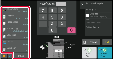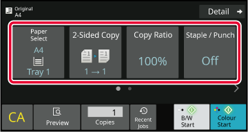 SIZE OF THE ORIGINALSELECTING THE PAPER TRAY FOR COPYINGAUTOMATIC 2-SIDED COPYINGENLARGING/REDUCING THE LENGTH AND WIDTH SEPARATELYAUTOMATIC ADJUSTMENT OF EXPOSURE AND ORIGINAL TYPEOUTPUT